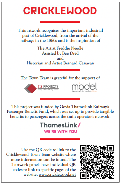 Cricklewood Town Team lead for this project Angela Payne said: “It has been a pleasure to work with Freddie and Bee to capture the rich history of Cricklewood and provide the opportunity to engage local communities in the history of their area. Travelling on Thameslink after linking on the QR code will enable passengers to learn as they travel. Bernard Canavan’s input into the history of Irish migration and the importance of the Crown has been inspiring. And the support from Damean with the QR codes and links to the Town Team website ensured this project met all the aims. This is the final project being delivered at the station thanks to the Passenger Benefit Fund.”