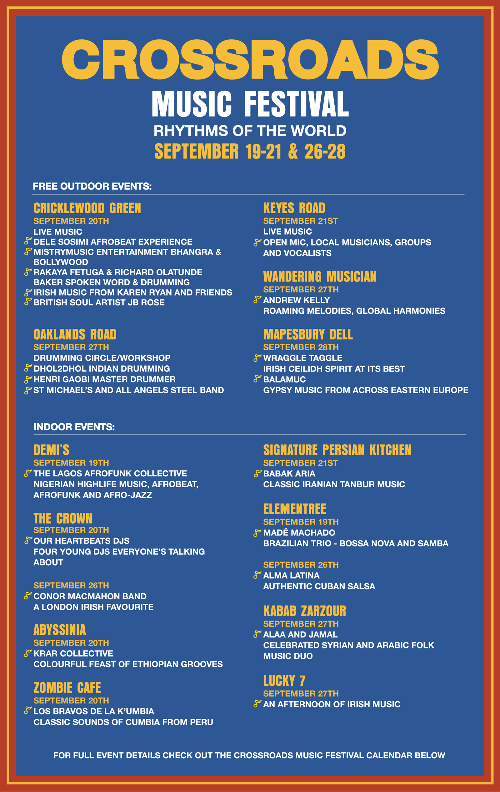 Cricklewood Town Team and Crossroads Productions are delighted to present the Crossroads Music Festival – a vibrant celebration of grassroots music that showcases the rich cultural diversity of our local community. This exciting festival brings together talented artists and music lovers to honour the authentic sounds and musical history that make Cricklewood special.